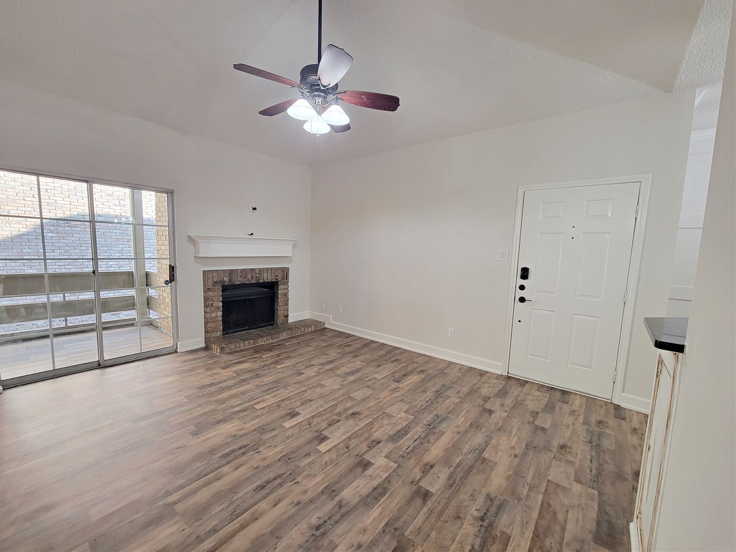 Welcome to this beautifully redone 2 bed 2 bath condo. This condo features a modern kitchen with granite countertops, stainless steel appliances including a refrigerator, stove, dishwasher, and microwave. The spacious living room boasts a cozy fireplace and wood vinyl flooring throughout. Enjoy the convenience of a washer and dryer in-unit. The master bedroom includes a large walk-in closet. Step outside onto the balcony with outdoor decorative lighting and take in the view. Residents also have access to a community pool for relaxation and entertainment. Don't miss out on this fantastic opportunity to call this condo your new home!