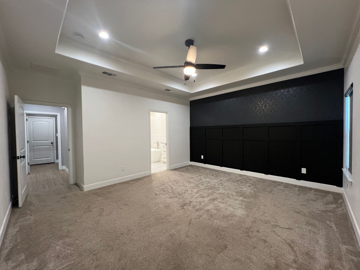 The master suite includes a striking accent wall, adding a touch of personality and sophistication. Ideal for both relaxing and entertaining, this home is nestled in an appealing area with quick access to schools, shopping, and dining.