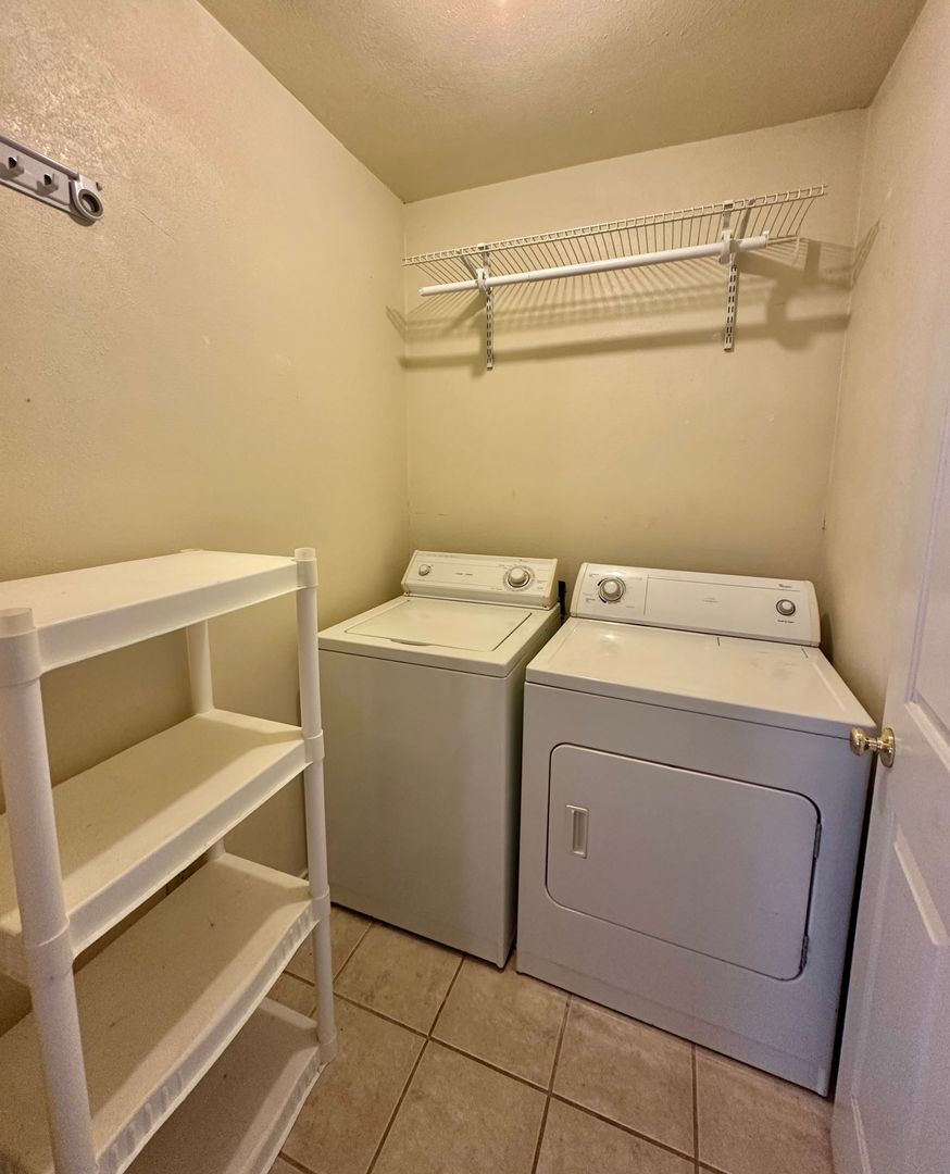 Each bedroom is nicely sized with soft carpet and ceiling fans, creating cozy, comfortable spaces that actually feel livable. Both bathrooms are clean and functional, and the separate laundry room with washer & dryer included is a huge plus.